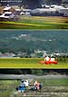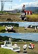 稲刈りは通常、田の規模に応じて(歩行型のバインダー)と(乗用型コンバイン)を使用している。